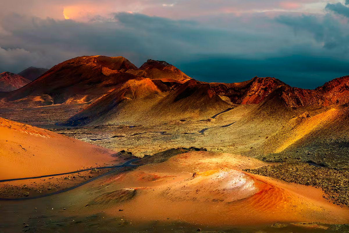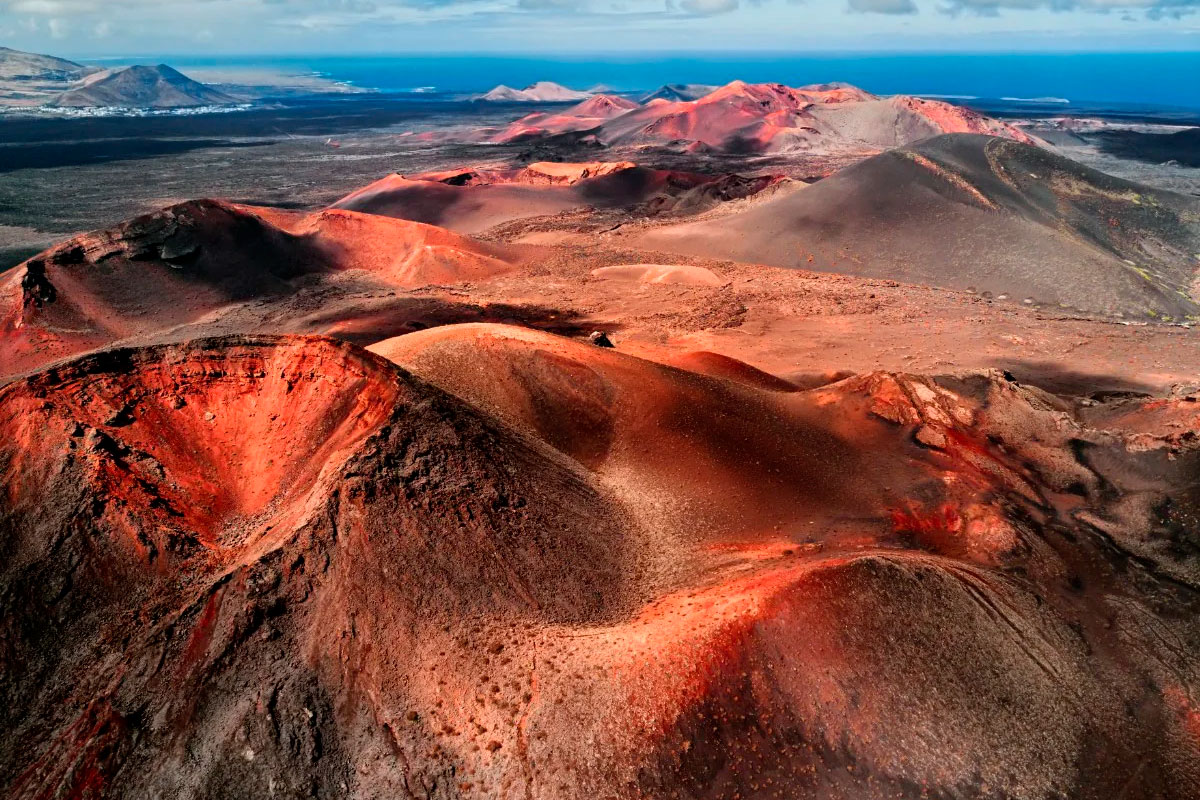 cráteres rojos, coladas de lava y paisajes lunares que reflejan el arder