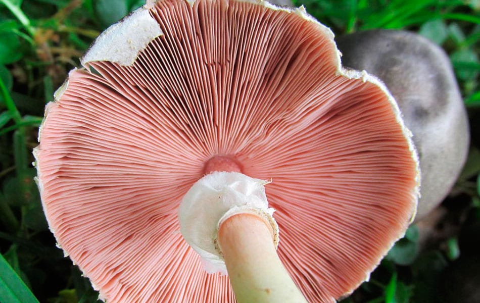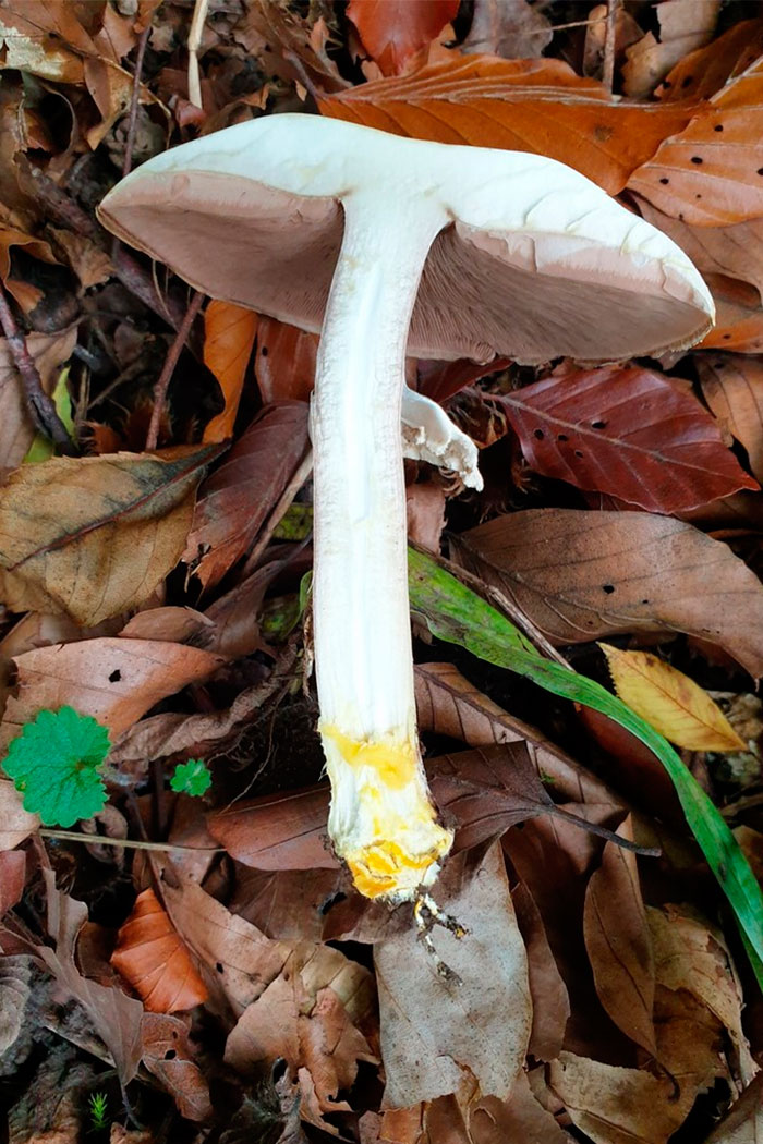 borde incurvado, entero y con restos del velo universal. Cutícula de