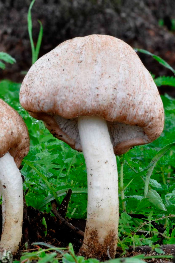 Pie muy esbelto, separable, de unos 6-12 cm de alto por 1-2 cm de